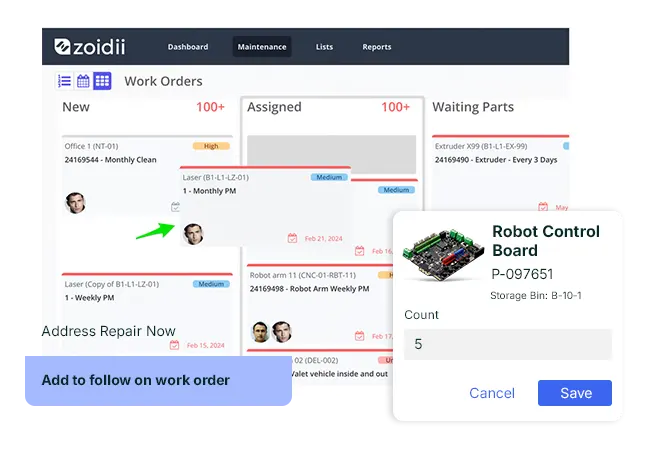 Zoidii is a powerful CMMS platform trusted by businesses of all sizes. We centralize your work orders, preventive maintenance schedules, asset history, and inventory control in one place, empowering your team to reduce equipment downtime and boost operational efficiency.