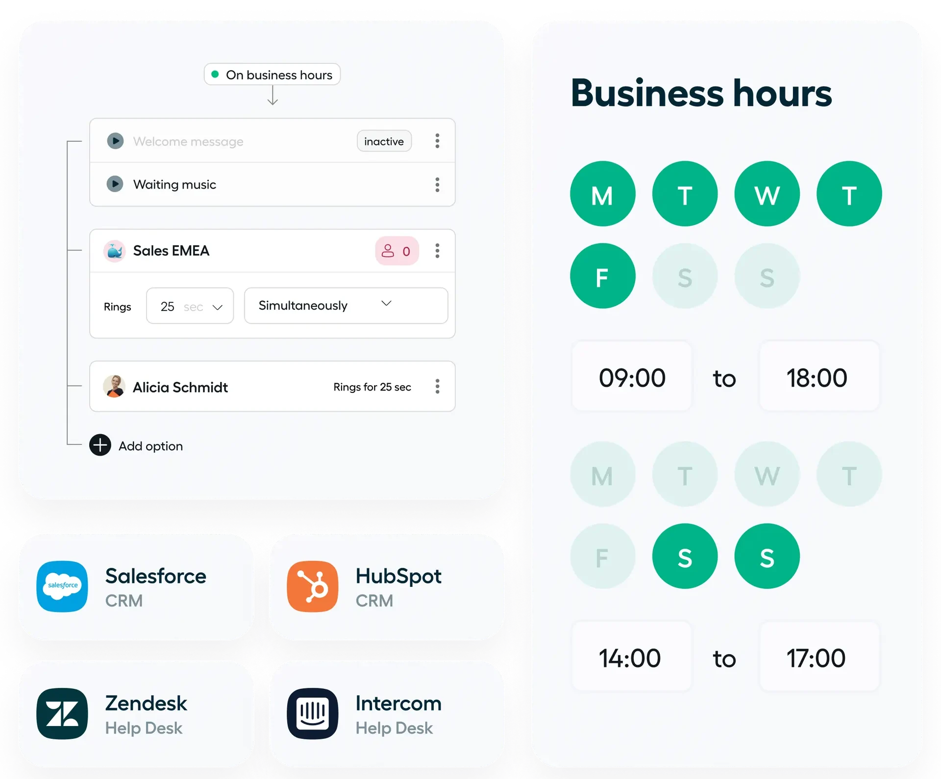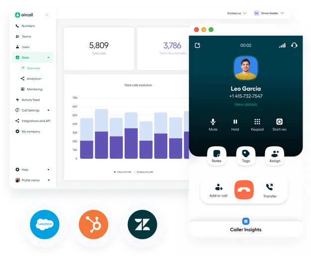 Aircall connects with tools like Salesforce, HubSpot and Zendesk so call data is synchronized.