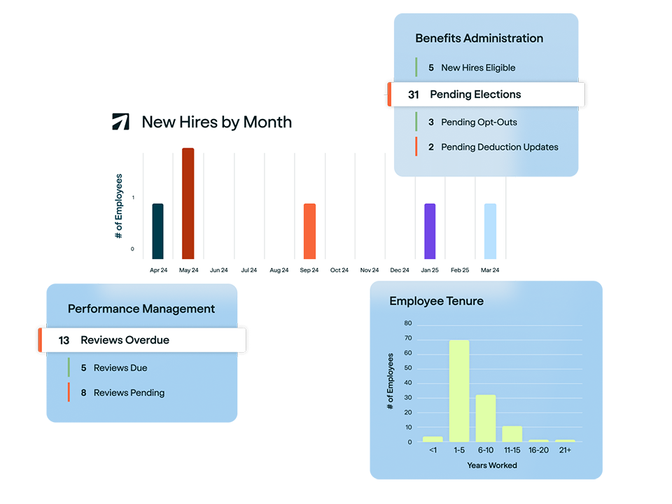 Consolidate employee records, documents, and HR actions into one connected platform. Eliminate scattered spreadsheets and disconnected software systems. Access accurate, up-to-date information anytime with centralized reporting and tracking.