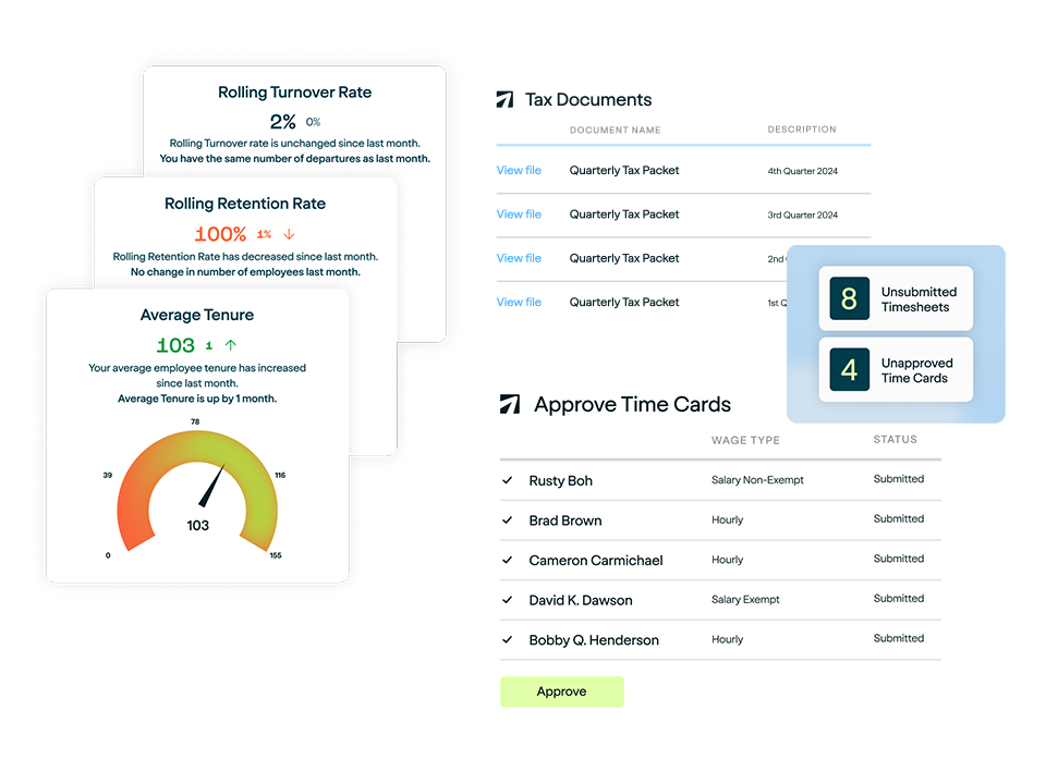 Digitize and streamline onboarding steps, compliance tasks, and employee updates. Replace manual paperwork with automated workflows that ensure nothing is missed. Free up HR teams to focus on employee experience and strategic people initiatives.