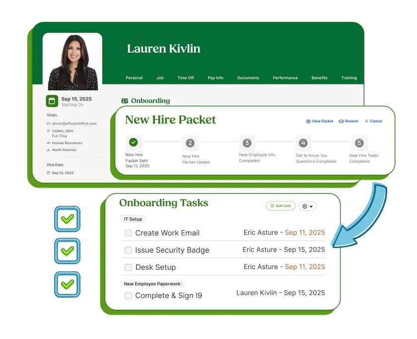 Seamlessly connect onboarding with payroll, benefits, and other HR modules.