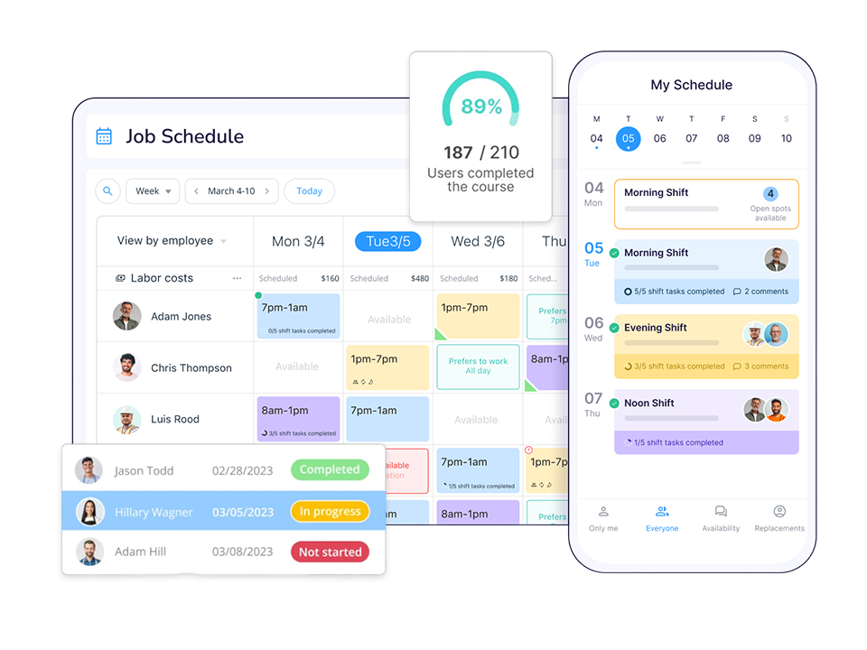 Provide guided onboarding journeys, digital forms, and training courses from any device. Track progress and ensure new hires complete required tasks and learning modules. Help employees feel equipped and aligned with company expectations from their first day.