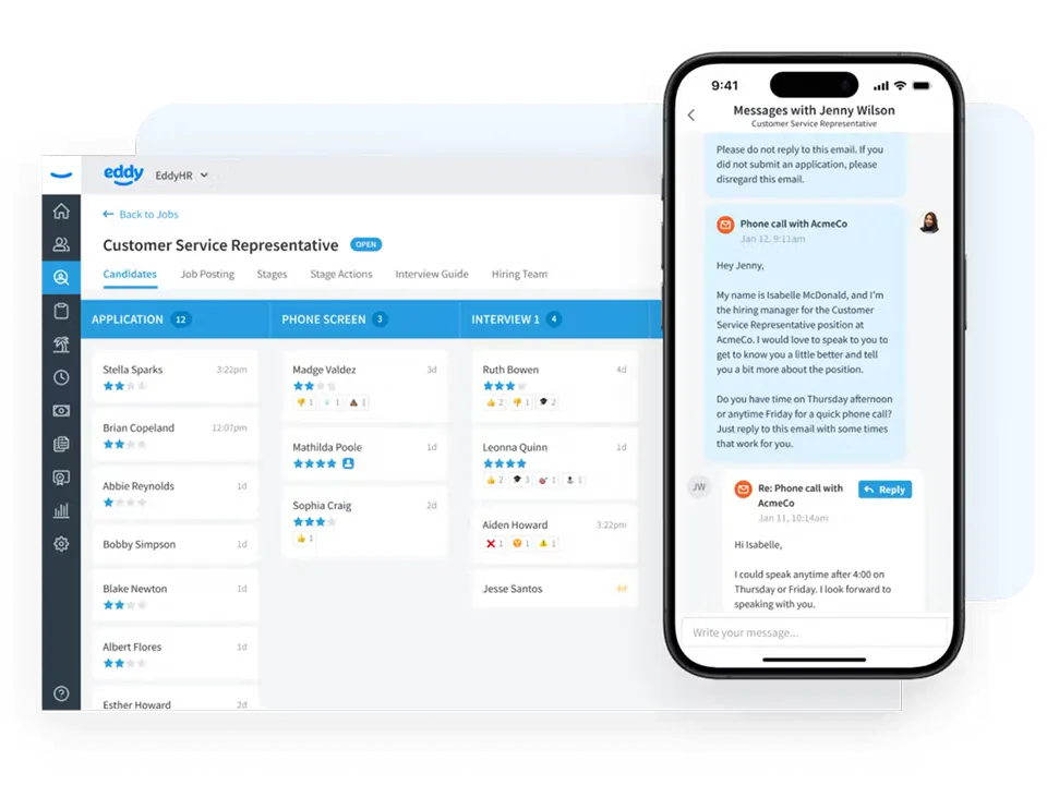 Eddy is the all-in-one HR platform built specifically for small and mid-sized businesses tired of juggling spreadsheets, paper files, and clunky software. From posting jobs to processing payroll, everything lives in one clean, intuitive system your entire team can master in minutes—not weeks. Stop paying for features you'll never use.