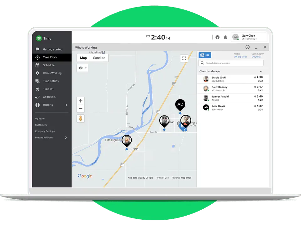 Empower your team with the QuickBooks Workforce app. Employees can track, submit, and approve time from anywhere on their mobile device. Get real-time answers to "who's working?" and see what job they are on.