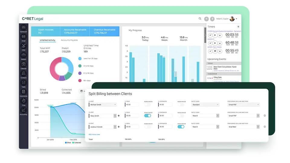 Simplify billing and time tracking with automated features that allow for accurate, real-time invoicing and fee management.