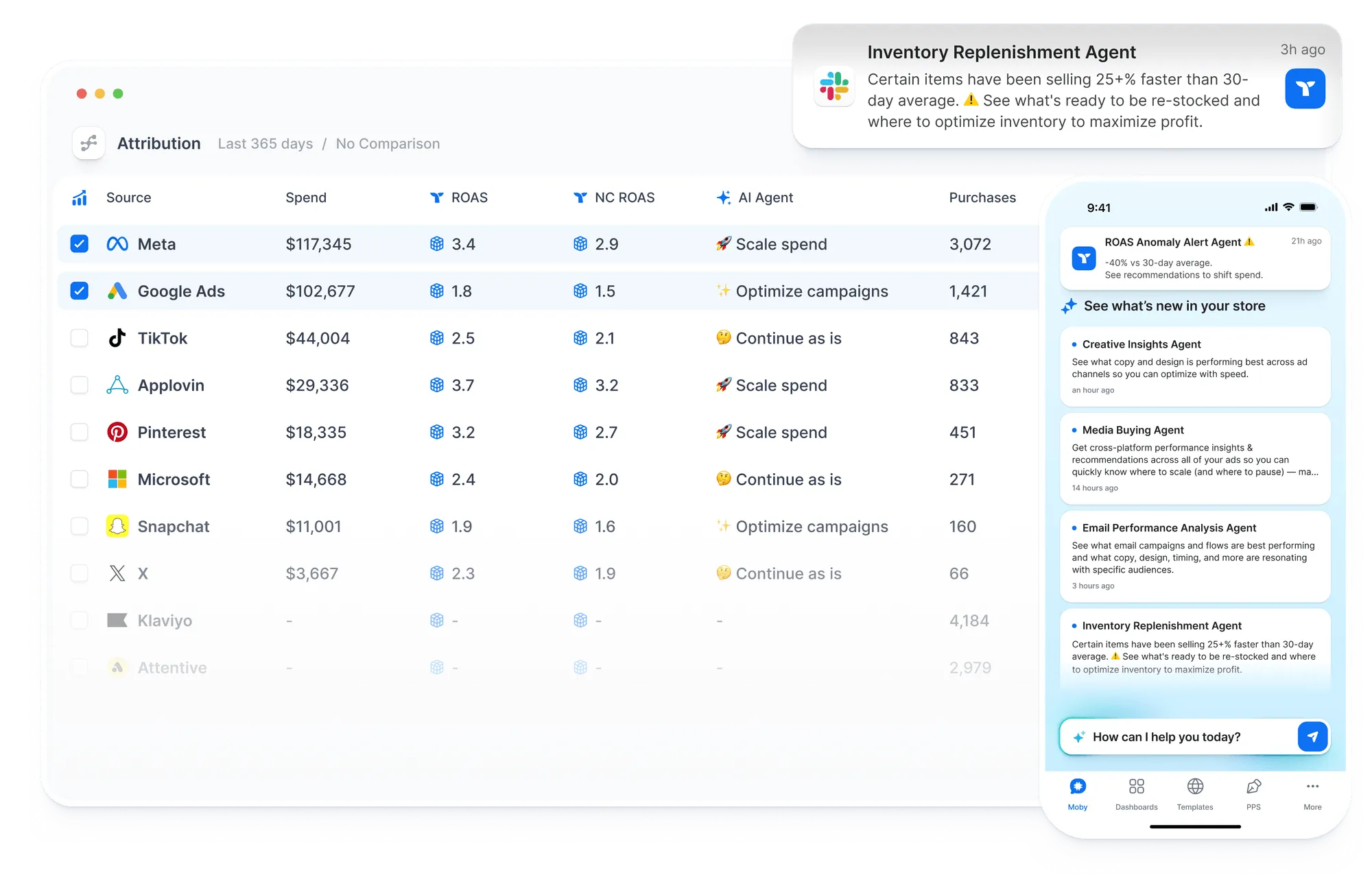 Get a clearer view of which channels and campaigns drive real revenue, not just clicks. Triple Whale supports blended attribution, channel mix modeling and deeper marketing analysis.